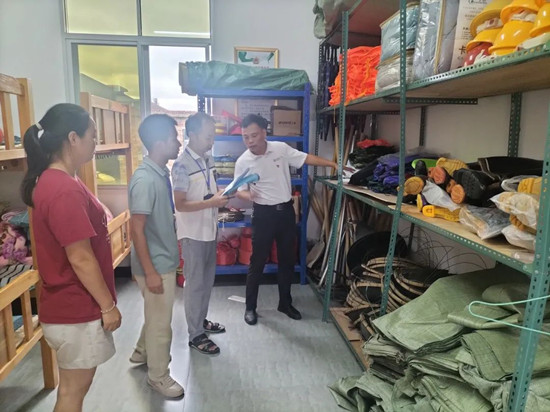防“风”至上,全面备汛,筑牢民生“保障网” “老伯,台风要来了,要注意安全,不要外出了”“您有需要随时到邻里中心,可以提供临时场所暂住。”刚到云峰村报到的县派驻村第一书记林培兴第一时间入户走访、排查宣传,及时告知群众台风预警信息,宣传应急避险常识,提醒群众做好防范准备。同时,各村充分用好“党建+”邻里中心、党群服务中心的服务功能,设置应急集中安置点,共可容纳约400人。在安置点提前做好防汛物资储备,备足救援物资和生活物资,为邻里乡亲提供坚实的保障。现已配备救生衣130件、救生圈60个、雨衣130件、便携式照明70多盏等。 |