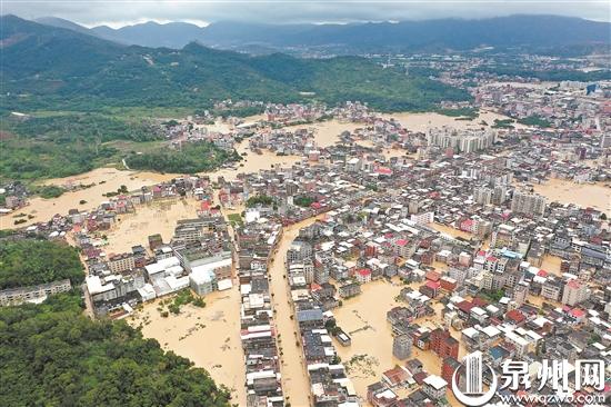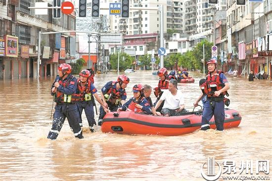 被淹的南安洪濑镇区 站在南安洪濑镇区外围,黄阿婆皱紧眉头,脚下是浑浊的积水,她恨不得自己涉水进入镇区。29日,受大暴雨影响,洪濑镇区大面积被淹,停水停电,通讯信号微弱,多人被困,其中包括黄阿婆的女儿一家。一方有难,八方支援。镇村党员干部冲锋在前,消防、公安、红十字救援队、蓝天救援队、迅捷救援队、曙光救援队、部队官兵等救援力量闻令而动,第一时间汇聚于此紧急救援。 屋内进水 家中一片狼藉 “我今年52岁,从未遇到过这么大的水!”洪濑集新村村民黄卿伍感叹道。下午1点半,记者跟随荒野召唤救援队的越野车到达集新村时,看到一片近50亩的蔬菜大棚被淹没,只露出棚顶的铁架子。坝田村的望仙桥附近水流湍急,村民有房屋一楼被淹。村民黄先生说,早上5点多开始下雨,望仙桥被淹,到早上七八点时,水漫到他家中,水量最大时达1.4米,冰箱都被冲倒。记者看到,此时院子里的水仍没过膝盖,一楼客厅的水也尚未退去,家具东倒西歪,一片狼藉,他们一家人正在往外舀水。其他村民也在清理现场,开展自救互救。 “我的女儿一家四口人被困在家里,两个外孙才3岁和5岁。现在还能联系上,等下他们手机没电,怕就联系不上了!”下午2时许,记者到达洪濑镇区外围时,遇到了在水中来回踱步的黄阿婆。约10分钟后,她突然冲入水中,向一辆驶来的救援皮筏艇迎去。“你别过来,别过来!水深!”女儿冲她喊道。看到女儿一家已被成功救出,她紧绷的脸终于露出笑容,向救援人员连连道谢。