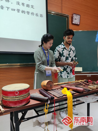 外国学生体验泉州南音乐器。泉州师范学院 供图 东南网8月2日讯(通讯员 陈斯扬 本网记者 谢玉妹)8月1日上午,2023年福建高校国际学生暑期海丝文化研习营在泉州师范学院开营,来自18个国家的51名营员参加活动。 泉州师范学院副校长黄江昆表示,虽然超强台风“杜苏芮”袭卷了校园,但学校紧张有序地开展救灾工作,快速恢复校园学习生活秩序,以加倍的热情和满满的诚意,保障了研习营如期举办。希望营员们在互学互鉴中增进了解、收获友谊、共同成长,也希望营员们通过参加此次活动,感知泉州,讲好中国故事,做中外友谊的桥梁和使者。 来自菲律宾的留学生代表、泉州师范学院硕士生留莹莹表示,在中国求学的几年,经历了中国共产党建党100周年和党的二十大胜利召开的伟大时刻,感受到中国不断增强的世界影响力,今后会努力做好中菲友谊的小使者。 来自贝宁的留学生代表、福建农林大学博士生大卫表示,在中国求学11年,深受中华文化吸引。研习营为青年学生提供了很好的交流学习平台,助力学生开阔眼界,结交各国青年朋友,期待能够深入体验海丝文化的魅力。 期间,大家欣赏了由泉州师院学生带来的南音表演单箫独拍《箫声吟》和传统体育抖空竹等精彩的非遗节目。 此次研习营由福建省教育厅主办、泉州师范学院承办,旨在贯彻落实党的二十大精神,深化党史国情教育,厚植乡土文化情怀,做强“留学福建”品牌。研习营为期5天,学校为营员们定制丰富多彩的课程,包括中国书法学习、闽南歌谣教唱、提线木偶体验、海丝景点参观、读书心得分享、泉州企业参访等活动。 |