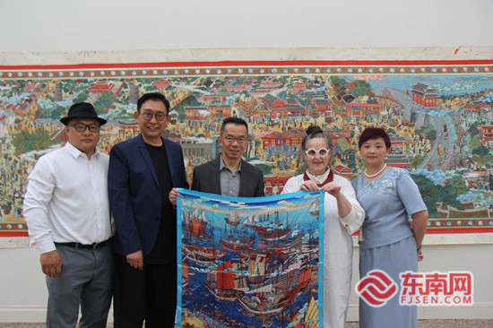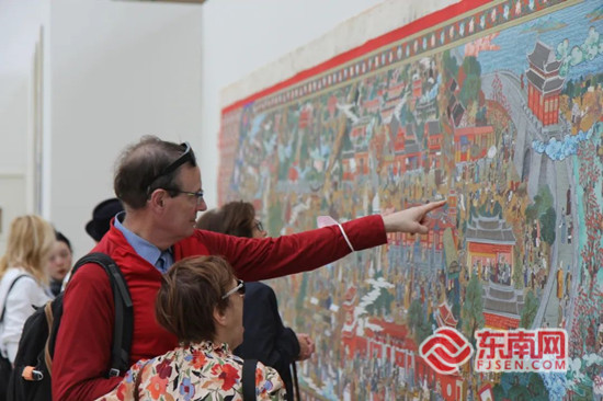 当地游客参观《世界商埠》。泉州文旅集团 供图 东南网7月2日讯(本网记者 谢玉妹 通讯员 骆澜)当地时间6月30日,由泉州文旅集团、北京凤凰数字科技有限公司、泉州市赛雄文化发展有限公司联合推出的综合材料壁画作品《世界商埠》海丝长卷得到法国专业评委会和艺术家们的高度认可,并荣获第162届法国巴黎国际艺术沙龙展特别艺术作品荣誉奖,该奖属于法国美术协会给出的最高奖项。 《世界商埠》致敬中法建交六十周年 第162届法国巴黎国际艺术沙龙展已在巴黎参议院橘园厅(卢森堡公园)开展一周有余。当地时间6月28日上午,中国驻法国大使卢沙野前来参观沙龙展,他一看到《世界商埠》就感叹道:“有点像清明上河图啊!”在法国国家美术协会执行主席Isabelle Lawson (伊莎贝尔·劳森)、ODI创始人宋冬、《世界商埠》总创意人吴静华等艺术家的陪同下,卢沙野仔细聆听介绍,不时发问,了解了作品的画面内容,创作意义,绘画材料及工艺等等,当他用放大镜端详人物细节时,惊叹道:“画得很细啊!” 据了解,在《世界商埠》中的聚宝街,展现着世界各国的商人齐聚在泉州贸易,文明地往来,代表着中国和平、开放、包容的氛围。这是宋元泉州的真实写照,也是对中法建交60周年的致敬。在将近十分钟的参观里,卢沙野大使对《世界商埠》兴致盎然,主动在画作前合影留念。 展览期间,《世界商埠》受到了法国各界的关注,法国参议院领导、法国外交部及交通部的官员、法国第六区区长让.皮耶尔.勒柯克等相继亲临现场,称赞作品,勉励团队。 语言不通,但艺术语言相通 《世界商埠》当属展馆中的“人气王”,尤其是法国当地的民众以及来法旅行的游客们对《世界商埠》展现出极大的热情。他们中有的是年近九旬的老人,拄着拐杖,在世界商埠前驻足良久;有的是附近的居民,展览期间,每天都来“探索”世界商埠;还有许多来自世界各地的游客,会在画中寻找自己国家的人物……不同民族,不同阶层,不同年龄的人都在世界商埠前汇聚,正如画卷中描绘的一千多年前的世界商埠刺桐城——市井十州人在此齐聚。 Lawson Alix是法国国家美术协会执行主席lsabelle Lawson的女儿,就读苏黎世大学。她热爱中国,有一个好听的名字叫做罗颂曦,曾在北大交流学习过两个月。她为《世界商埠》这幅细致精妙的作品所惊叹,有趣的是,她今年参加了中国举办的汉语比赛,其中一道题目是:中国宋元时期东方第一大港是哪个城市?今天,她看着画卷中繁华的港口景象,对东方第一大港的样貌有了直观的了解,心中的疑惑也得到了解答。同时,她也被画作中展现的泉州历史文化所深深吸引,萌生了今年前往泉州旅行的念头,想要亲身感受这座城市的魅力。 艺术家对好的艺术作品最为敏锐 在这期间,《世界商埠》受到了各界的广泛好评。正如一直在现场的法国国家美术协会执行主席Isabelle Lawson(伊莎贝尔·劳森)所说:“观众们对作品的工艺和艺术家们的付出都非常感兴趣,他们很好奇这幅画究竟包含了什么内容?展现了什么场景?又是通过什么样的方式表达出来的?当我向他们解释时,他们都会发出惊叹,‘哇哦!原来是这样!’他们的眼睛里充满了好奇和赞叹,仿佛打开了通往中国艺术世界的一扇新的大门。” 法国国家美术协会主席Michel king的女儿Isabelle King,是法国视觉艺术家、雕刻家和陶瓷雕塑家。在欣赏完画卷后,她说,《世界商埠》是一幅巨幅画作,却充满着精妙细节。它将中国宋代的政治、宗教、文化、商贸交流等元素融入其中,展现了中国与世界各国人民的交流,以及中国悠久的历史。画中还描绘了古代的瓷器、织物等器具,令人仿佛置身于历史的长河之中。观众们可以在画前驻足数小时,沉浸在海量的内容中,细细品味。这幅画卷如同一部长篇漫画,讲述了一个宏大的中国故事。也许未来,法国艺术家们也能创作出类似的“法国世界商埠长卷”,讲述法国与世界的交流故事,展现世界文明的多样性。 雕塑家米里亚姆·西本·门德的展位正好在《世界商埠》对面,这位法国艺术家在深入了解《世界商埠》之后,不仅自己沉醉于作品的艺术魅力,更主动帮助参展团队进行作品介绍。她将作品的创作及内容向当地民众们娓娓道来,让更多人了解画作背后的故事和文化内涵。她跟参展团队交流完后表示,有幸在沙龙欣赏到这幅作品,作品让她心生向往,想要去中国旅行,探索这座城市的每一个角落。 据悉,米里亚姆·西本·门德曾两次前往中国,深深地爱上了那里的民俗风情、服饰、生活方式以及奇妙的食物。在她看来,这幅画作将这一切都完美地重现了,它展现了中国商业的繁荣、仁慈的胸怀、严谨的态度以及无处不在的美感。“中国人将美融入到生活的每一个细节,从物件的用料到美学设计都精益求精,他们对美的热爱令人敬佩。”这位法国艺术家的热情和真诚,让参展团队深受感动。她用自己的方式,将中法艺术家的友谊以《世界商埠》为纽带,紧紧地联系在一起。这不仅是一次文化交流,也是中法友谊的一个缩影。 《东方大港》喷绘稿亮相数字艺术特展 《世界商埠》在橘园厅参展期间反响颇佳,团队的另一幅画作《东方大港》的喷绘稿,及丝巾、茶席等周边产品,受邀参加位于法国巴黎东方中心的“2024法国巴黎国际艺术沙龙展·中国数字艺术特展”,为后期数字化合作奠定基础,展览时间为6月27日—7月3