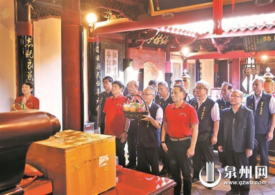 8日下午,来自台湾学甲慈济宫的进香团来到位于鲤城区中山南路的花桥慈济宫进香谒祖。