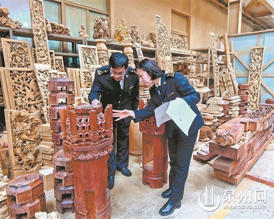 泉州海关关员对“非遗”木雕产品进行查验 千年雕艺,海丝情缘。近日,在晋江市东石镇潘山村,经泉州海关监管,晋江市艺达木雕美术有限公司的1批龙柱、龙头等767件庙宇木雕产品,通过海运出口泰国,这也是2025年首批泉州“非遗”木雕产品出海。 “近年来我们的‘非遗’潘山庙宇木雕在东南亚的知名度逐步提高。在去年出口一百万美元的基础上,今年预计出口值将翻一番。”晋江市艺达木雕美术有限公司总经理郑培元高兴地说。 据悉,潘山庙宇木雕以庙宇雕刻为表现方式,以精细繁盛、雍容华美见长,历史悠久,工艺精湛,产品主要销往泰国、马来西亚、新加坡、印度尼西亚、菲律宾等共建“一带一路”国家。2021年,以潘山庙宇木雕为代表的泉州木雕成功入选第五批国家级非遗名录。这批“潘山庙宇木雕”将在春节期间抵达泰国曼谷,用于普吉岛观音庙的重新翻建和修缮,并于元宵节完成,将充分展示中国传统非遗文化的魅力,促进泉州与共建“一带一路”国家贸易往来与文化交流。 由于这批木雕产品泰国客户需求迫切,工期特别赶,加上原料本身携带或者加工、存放、储运过程存在的植物检疫风险,将会影响交货。为此,泉州海关主动提前介入,指导企业按国外植物检疫技术要求,完善以有害生物和有毒有害物质控制和溯源管理为核心的质量管理体系,确保产品质量安全。同时,开辟属地查验“绿色通道”,指导企业提前申报,提供“优先查验”、叠加“云签发”植物检疫证书等便利化服务,保障泉州“非遗”木雕产品高效出海。(泉州晚报融媒体记者刘文艳 通讯员徐小伟 黄忠族 文/图) |
