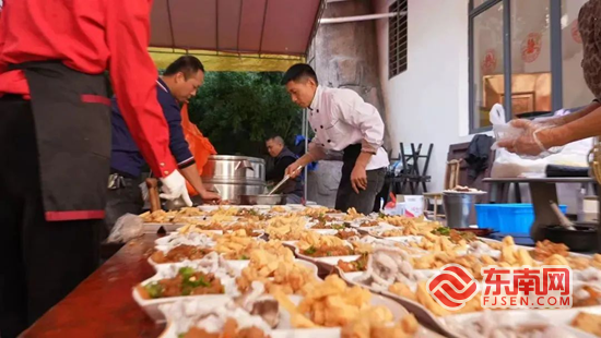 乡宴现场。安溪县委宣传部 供图 东南网3月25日讯(通讯员 陈和俐 本网记者 陈培源)湖头炸鸡卷、福寿米粉炒、传统卤封肉……近日,中央电视台17套农业农村频道栏目组(三农群英汇)推出节目《茶乡江湖味》,安溪县湖头镇美坂村的乡村厨师张贵明一场茶乡婚宴流水席“火了”。他将传统茶文化与现代烹饪技巧完美结合,展现家乡饮食文化的独特魅力,让观众感受到乡村宴席中蕴含的人情温度与文化传承。 从业26年以来,张贵明深耕美食制作,不遗余力传播家乡美食文化,积极助力推动家乡美食产业蓬勃发展。其不仅在各级各类美食烹饪大赛中获奖,更于2024年12月,在“2024中国乡宴产业大会”中获评“中国乡宴年度优秀乡厨”称号。他凭借对美食的执着追求和创新精神,书写了一段属于自己的美食传奇。 从学徒到名师 几十年如一日 21日,是安溪县祥华乡白玉村詹先生家的大喜日子。此次38桌喜宴由张贵明掌勺。喜宴现场,和着呼呼的煤气炉声响,张贵明手握炒锅,挥铲颠勺、撒盐点醋,动作干脆利落。不一会儿,春笋猪肚汤、鲍鱼双彩豆、油淋龙胆斑等佳肴陆续上桌,菜品和城里酒店的花样摆盘并无二致,刺激着“吃桌”人的味蕾。从凌晨5点出发,一直忙到中午最后一道水果拼盘做完,张贵明才得空坐下来休息一下。 谈起做菜与乡宴,张贵明打开话匣子。“小时候妈妈走得早,爸爸为了养家糊口,经常在外忙一整天,家里就只剩我和两个哥哥。我六七岁的时候,身高还没有灶台高,便垫着小椅子,给自己和两个哥哥烧菜吃,有时还给爸爸送饭。久而久之,我便无师自通掌握了一些基本的烧菜技巧,自己也逐渐爱上烧菜做饭。” 1998年,张贵明初中毕业,只身来到厦门,才16岁的他便怀揣着对烹饪的热爱,成为了厦门市新迎泽酒店的一名学徒。学徒期间,没有工资,但是张贵明是最勤奋的,他总是最早一个到,最晚一个走。他非常刻苦地练习厨艺,每天花费大量时间在厨房练习基本功,认真向师傅学,向同事学,向书本学。 “那时候当学徒,还得给师傅洗衣服。我总是洗得最干净的一个。别说衣服上的黄点了,就连每一个扣子我都会洗得锃亮。”张贵明说。凭借着自己不懈的努力和师傅的赏识,短短三年,张贵明便从最初的打下手,到后来的掌勺,逐渐崭露头角。2001年,厦门火车站滇龙酒店聘请他担任厨师长,后他又在厦门市海沧浩月湖酒店担任行政总厨,积累了丰富的烹饪经验和管理经验。 2010年,由于父亲生病,张贵明放弃高薪,毅然决定回到家乡,一边照顾父亲,一边自己创业。“做餐饮到哪里不是做。”张贵明说。他在家乡创办了湖头岭兜美食园。一开始只是一个小饭店,店面还是租的,但是凭借张贵明精湛的烹饪技艺,岭兜美食园迅速在当地打响招牌。 谈起做乡宴的契机,张贵明说:“一开始也没想要做乡宴。有一次我受邀去吃同学婚宴,当天婚宴的主厨在前一晚喝醉酒了没过来,刚好我以前在厦门酒店工作时有一定经验,我便临时救急,第一次为农村流水席掌勺。” 第一次掌勺乡宴就是个40几桌的“大单子”,但是张贵明的16道菜顺利通过“吃桌”人的“考核”。此后,张贵明的名气便打开了,请他去操办宴席的人络绎不绝,除本村及周边村外,还有别的乡镇。张贵明也成了专业乡厨。 乡宴对乡厨的体力是极大的考验。“每次做完最后一道菜,腰杆老是一时半会挺不起来,生意好的时候要连续作战好几天,常常是累得连蚊子叮咬都懒得拍。”张贵明说。不过,乡宴结束时乡亲们的那句“煮得很好料”,是对他最大的犒劳,也让他倍感欣慰。 张贵明介绍,每年掌勺一百多场是常事,高峰时期甚至高达两百多场近万桌,有时候一场将近200桌。每一场宴席,张贵明都亲自掌勺,随着订单越来越多,张贵明还成立了专业团队,行走于十里八乡,为群众奉上一场场家宴。 张贵明几十年如一日在锅碗瓢盆间探索,先后被中国名厨烹饪委员会授予“国家名厨”称号,被福建省餐饮烹饪行业协会授予“闽菜名师”称号。 |