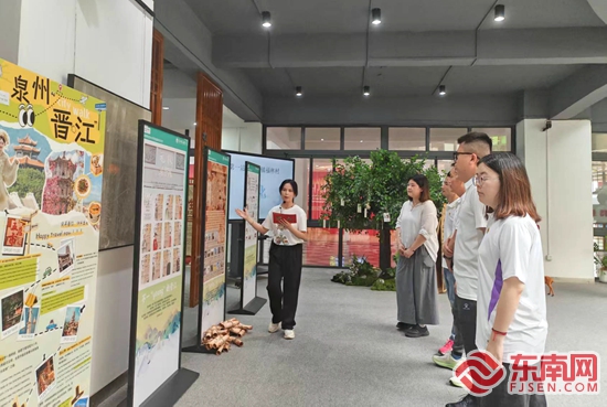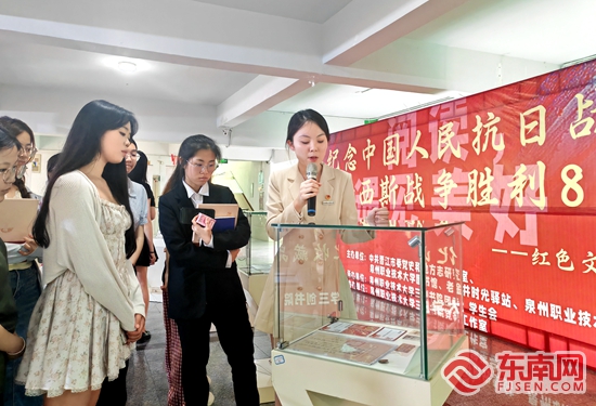 学生作品《书游晋江》。东南网记者 施远圻 摄 “我和同学三个人用了快一个月的时间创作了《书游晋江》这本立体书,里面不仅介绍了非遗、美景还有美食。也是为了做这本立体书,我们阅读了《泉州府志》《安海镇志》等多本书,完成创作的同时,也学到了很多新知识。”该校服装设计专业学生陈雯娜表示,通过阅读她们不仅学到了知识,更感到充实与快乐。 线下共读《蛤蟆先生去看心理医生》、“阅读+中医文化”体验、“重温峥嵘岁月,共品红色书香”共读沙龙……除了图书馆的立体图书展外,六大书院结合各自特色在学生们的生活区,打造的校内阅读文化新矩阵,也吸引不少学生参加打卡。 “我们书院举办了红色古物主题展,展出包括奖章、武器装备、生活用品等红色古物,供学生参观学习。现场还设立相关主题展板,展现了中国共产党人从苏维埃时期到社会主义经济建设时期的波澜壮阔的历史征程,供学生们学习。”泉州职业技术大学三创书院党总支书记李海洋告诉记者,现场还设置趣味有奖答题活动,以学生喜欢的方式检验他们现场阅读学习成果。 郑春梅表示,一直以来,学校都在努力建设书香校园,积极参与社会阅读服务,未来该校将加强校内外联动,延伸服务触角,持续夯实校园阅读文化建设,举办闽韵讲坛等各类文化讲座、展览,继续深耕真人图书秀、南房阅话阅读沙龙等品牌阅读活动。