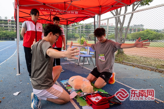 活动现场。学校 供图 东南网5月8日讯(本网记者 林婕 通讯员 李逸煊)正值第78个“世界红十字日”来临之际,5月7日,泉州职业技术大学举行2025年“红十字博爱周”启动仪式暨首届红十字定向越野大赛。 据介绍,泉州职业技术大学2025年“红十字博爱周”系列活动包含泉州红十字博爱驿站参观体验、红十字救护员取证培训班、“星光守护”红十字助残活动、红十字短视频大赛、AED趣味打卡等8项。启动仪式上,主办方还为该校荣获2024年泉州市红十字四星级志愿者、三星级志愿者颁发荣誉证书,为学校新成立的红十字 “三献” 志愿服务队、红十字 “救在身边” 志愿服务队、红十字青年志愿服务队授旗。 “学校高度重视红十字工作,连续多年承办省级红十字活动、超过7000名师生取得红十字救护员证,常态化组织师生参与各类红十字志愿服务活动,2024年共有65名学生被认定为泉州市红十字星级志愿者,其中四星级1人、三星级2人。”泉州职业技术大学红十字会副会长、校团委书记黄胤聪介绍学校红十字工作开展情况。 当天,学校首届红十字定向越野大赛启动,参赛的30支队伍共140名选手在校园内展开激烈角逐。 据悉,本次比赛设置了30个打卡点,包括知识问答点以及互动点位。赛场上,每支参赛队伍都化身默契十足的“生命守护者联盟”,他们突破重重实战化急救挑战:面对创伤,他们迅速展开无菌敷料覆盖、螺旋包扎,动作行云流水;处理小腿骨折时,熟练使用衬垫、绷带,确保伤者肢体稳定。当模拟气道异物梗阻场景出现,队员们立刻施展海姆立克急救法,争分夺秒解除“窒息危机”。最具挑战的心肺复苏与AED操作环节,队员间无缝衔接,将急救知识与团队协作发挥得淋漓尽致。这些充满考验的任务,不仅是技能的较量,更让每位选手在闯关打卡中感受红十字精神的魅力。 活动现场,主办方还设置了“三献”宣传区、海姆立克教学体验区、创伤包扎教学体验区、防艾宣传区等九个摊位,志愿者通过展板和发放资料、手把手教学等形式,向学生们科普无偿献血、造血干细胞捐献及遗体器官捐献的意义与流程,同时开展现场教学、实操演练,为同学们提供沉浸式急救体验。