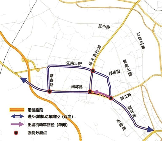 南环路(黄龙南大道至池峰路路段)施工期间绕行路线参考图 昨日,记者从鲤城交警大队获悉,为保障中环城贯通工程(黄龙南大道、南环路快捷化改造工程)施工期间交通的安全、有序,交警部门对该工程施工涉及路段实施交通限制措施。 据介绍,6月3日至7月13日,南环路(黄龙南大道路口至池峰路路口路段)禁止机动车自西向东(南安往市区方向)通行,行人、非机动车仍可通行。届时,机动车可以通过南环路—黄龙南大道/常泰路—江南大街—池峰路—南环路进行绕道行驶。 6月3日至8月23日,黄龙南大道(鼎盛南街至规划景山路段)禁止机动车自南向北(站前大道往黄龙大桥方向)通行,行人、非机动车仍可通行。届时,小型汽车可通过黄龙南大道—江南大街或者鼎盛南街—金鲤大道—繁荣大道—黄龙南大道绕道行驶;为避免中重型货车穿行居民区,中重型货车请通过黄龙南大道—江南大街—金鲤大道—繁荣大道—黄龙南大道绕道行驶。 交警提醒,以上交通限制措施实施时间将依据工程作业进度进行调整,具体以现场设置的交通标志等设施为准。过往车辆驾驶人请留意交通标志与标线,配合现场工作人员引导有序通行,确保出行安全。(东南早报融媒体记者傅恒 通讯员王唯佳) |