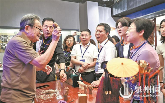 与会嘉宾在泉州非遗馆参观木偶头制作 6月14日“文化与自然遗产日”之际,由中央精神文明建设办公室主办的“保护文化遗产·我们在行动”宣传活动在泉州启幕。由中央和地方相关部门负责人、专家学者、群众及媒体代表组成的观摩团,深入泉州多处文化遗产点位,在古街巷陌的烟火气中,感受世遗之城的独特魅力,探寻文化遗产活态传承的“泉州智慧”,并给予高度评价。 非遗荟萃 技艺殿堂里的“文化共鸣” 泉州非物质文化遗产馆化身“技艺圣殿”,琳琅满目的木雕、陶瓷、金苍绣、花灯、福船等世界级和国家级非遗项目,为游客带来沉浸式体验,也令嘉宾赞叹不已。 湖北省随州市委宣传部副部长刘炳坤说:“泉州非遗在民间得到极好传承弘扬,保护经验非常值得学习。作为编钟古乐之乡,随州也需创新模式,让古老遗产焕发当代光彩。”广西梧州市委宣传部副部长钟燕萍用“目不暇接、叹为观止”来形容这次观摩:“文化和文明在这里得到了具象化的交融。” 广东省潮州市委文明办副主任林锐说:“泉州潮州文化同源共脉,相似的传统、遗迹与风俗让他备感亲切。两地皆有精湛木雕和木偶技艺(泉州提线木偶、潮州‘柴头戏’),各自拥有独特艺术(永春纸织画、麦秆剪贴画)。泉州成功申遗‘泉州:宋元中国的世界海洋商贸中心’,潮州也在积极筹备,这份共同执着彰显了古城守护者的文化自觉与合力。” 活态传承 烟火气里的“保护智慧” 泉州文化遗产保护的魅力,更在于其融入城市肌理与市民生活的“活态”模式。 在保留闽南传统红砖厝风貌的金鱼巷,重庆大足区委宣传部副部长段云奎赞赏其从“年久失修”到重现魅力的改造成效。中山大学中文系教授、广东省作协主席谢有顺高度评价泉州“微改造”理念:“没有把古街变成‘标本’,而是让居民生活与遗产保护共生、传统市井与现代业态并存,这本身就是‘群防群护’的生动体现。” |