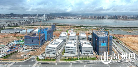昨日,泉州南翼国家高新区国际芯创港项目二期(展示中心)、三期(研办楼、公寓楼)全面封顶,标志着泉州南翼国家高新区晋江区域重点项目建设取得重大突破。据悉,国际芯创港项目将为晋江抢滩布局医疗健康、集成电路、核技术应用等新兴产业提供优质空间,加速培育“芯动能”、打造“核引擎”,发展新质生产力。(融媒体记者许雅玲 林劲峰 摄)
