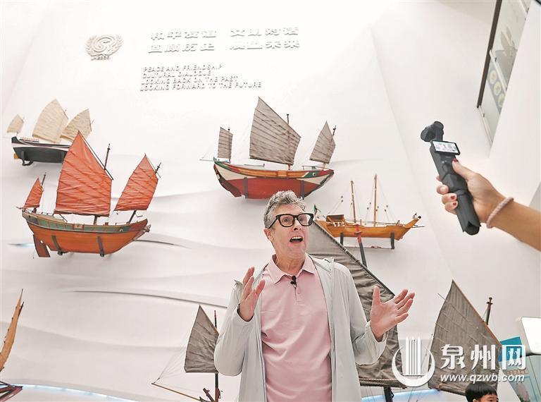 参观时,来自英国的博主巴尔特·李尤为投入。他与助理手持设备全程拍摄,在镜头前娓娓道来:“海上丝绸之路是古代最独特的航线,而泉州正是它的起点……”镜头里,他细致地介绍着“光明之城”的商贸传奇,让海丝故事通过数字平台走向更广阔的世界。