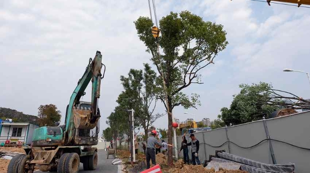 东南网3月13日讯(石狮日报记者 康清辉 颜华杰 通讯员 郭文灿) 昨天是我国第42个植树节。记者在学府公园B区与西入口游客集散中心衔接段看到,借助起吊机,施工人员将一棵棵枝干高直挺拔、树冠优雅的香樟栽种到行道树池里。城投集团城建公司相关负责人介绍,对这段衔接段的综合提升(包括坑体改造、增设栈道和绿化提升),也是今年我市“城市提质年”活动的一部分,主要是对峡谷旅游路两侧景观的持续提升。