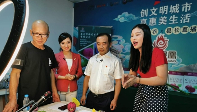 惠安县县长赖清正(右二)走进直播间推介当地农特产品,并和网友进行互动。东南网记者 谢玉妹 摄 东南网8月19日讯(本网记者 谢玉妹)“尝一尝用丸子做的比萨”“这是加入火龙果做的面条”“这是整块石头刻出来的茶壶”……19日下午,惠安县县长赖清正走进直播间,与网友们一同分享惠安的美食美景,为惠安特色产品“代言”。 为响应“全闽乐购”线上促销活动,进一步提升惠安县特色农产品全网传播和影响力,拓宽农产品销售渠道,由惠安县人民政府主办,惠安县委宣传部、惠安县农业农村局承办的“创文明城市·享惠美生活”直播带货活动于当天下午启幕。现场,达利食品、曼玲鱼卷、富邦食品、大爱农业等多个惠安企业在聚龙小镇圣曼直播基地开设直播。 “一起到全国最美海岸线一一崇武,吹吹海风、吃吃美食,感受千年古城惠安的魅力吧!”赖清正走进十余个直播间,和主播们一起推介惠安美食、美景、石雕艺术和惠安女服饰。 作为地方特色小吃,瑞芳鱼卷一直深受当地百姓喜爱,由于选用本土海域的新鲜马鲛鱼作为原材料,瑞芳的销量并未因国外疫情受到影响。“虽然销量还蛮稳定,但我们还是在尝试拓展线上销售渠道,直播就是一个很好的方式。”瑞芳鱼卷副总经理何朝晖告诉记者,目前,瑞芳正在摸索线上销售所需的冷链物流等配套事项。“今天县长来我们直播间给我们的产品‘代言’打气,还是很感动的。” |