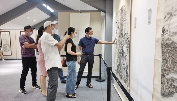 嘉宾们欣赏展出的画作。东南网记者 林婕 摄