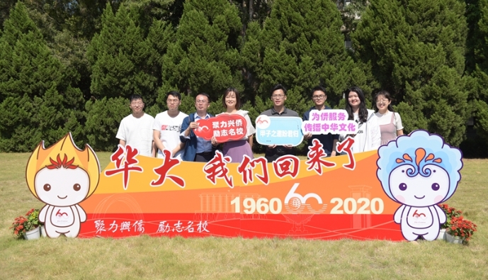 “华大,我们回来了!”一群校友在校园内设置的打卡点内合影。东南网记者 林婕 摄 |