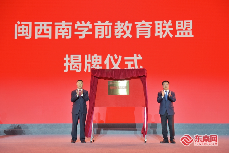 庆祝大会上举行闽西南学前教育联盟成立揭牌仪式。东南网记者 林婕 摄