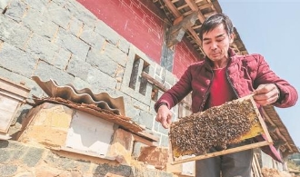 当年的贫困户王建成,通过种茶、养蜂和养鸡鸭,现在年收入已超过10万元。