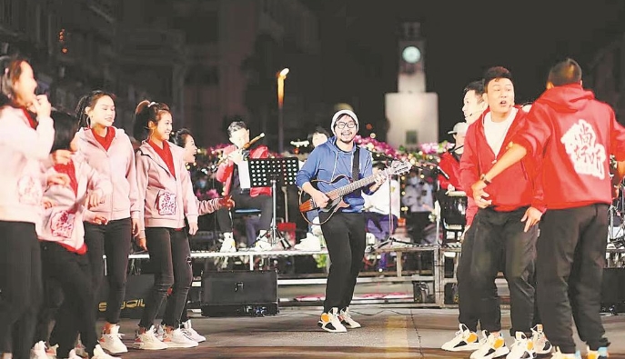 尚好听唱队在泉州西街沉浸式演出。(受访者供图) 东南网2月2日讯(福建日报记者 王敏霞) 岁末年初,80后的曾龙专注做了两件事。 元旦前,作为福建省梨园戏传承中心的年轻导演,他参与了梨园戏著名导演吴捷秋先生一百周年诞辰纪念活动。 元旦后,作为尚好听青年唱队的领队,他和小伙伴们做完去年一年的工作总结后,面向2021年,开始了思考。 这两件事,都是关于传承和创新。 梨园戏,很古典也可很时尚 2020年12月19日,一场为纪念梨园戏著名导演吴捷秋先生一百周年诞辰的活动在泉州梨园古典戏院举行。 活动在《陈三五娘序曲》中拉开帷幕,随后,吴捷秋执导的《陈三五娘》《吕蒙正》《胭脂记》《高文举》《朱文太平钱》《苏秦》《董永》等经典戏接连呈现。 “我内心感到十分震撼!”虽然曾龙排演期间就作为舞台监制参与其中,但当看到天幕上一张张斑驳发黄的老剧照接连出现,看到“陈三出场”的规整,“移步游赏”的典雅;看到“送君”的深情,“心肝跋碎”的柔肠;看到“远望乡里”的苍劲,“天旋地转”的悲壮……年轻的曾龙,发自内心地为八百年古典梨园戏的魅力深深折服,为老一辈梨园戏艺术家的执着和付出所感动。 想起自己去年几场试图“让梨园戏更年轻、更时尚”的探索性沉浸式演出,曾龙内心陡生出几分惶恐。 2020年11月,曾龙带领尚好听唱队把《陈三五娘》的唱段从舞台搬到了清源山老君岩。 这是一场“大杂烩”表演,风格慢慢由传统过渡到现代,唱队成员有的身着梨园行头,有的日常着装;有传统乐器,也有西洋乐器;有梨园唱腔,还有流行音乐……现场观众跟着戏中情节,渐渐沉浸其中。 “《陈三五娘》就是闽南地区版的《梁山伯与祝英台》,我们在排演之初,就围绕着梨园戏的唱段确定了‘爱情’的主题。”曾龙说,融入闽南语歌曲,就是为了增加观众的接受度。果然,整场演出气氛热烈,新鲜的表演形式让观众感叹“梨园戏还可以这样时尚”,闽南语歌曲引起观者的大合唱。 热闹、新鲜的演出博得一片叫好声。在泉州各媒体“火”了一把后,曾龙却没有停止思考。 |