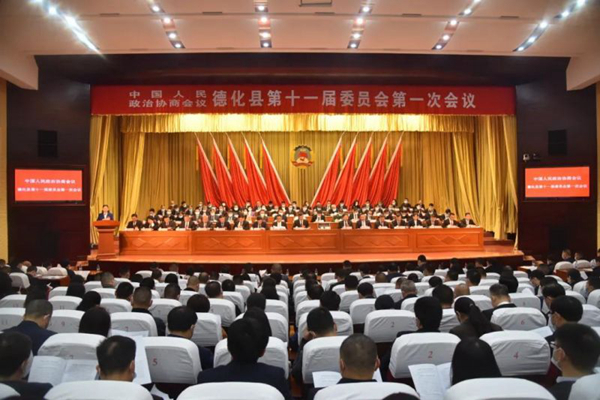 12月21日上午,德化县政协十一届一次会议举行预备会,听取会议筹备情况报告,通过会议议程、主席团成员名单、秘书长、副秘书长名单。预备会后,德化县政协十一届一次会议开幕。来自全县各行各业、各条战线上的政协委员齐聚一堂,共商未来五年全县经济社会各项事业发展大计。 本次会议应到委员205名,因事请假的委员9名,实到委员196名,符合政协章程规定。 当天上午9点30分,大会在雄壮的国歌声中开幕! 黄文捷、温文英、方俊钦、王传敬、陈维启、黄俊荣、陈东明、徐明侃、颜鸿琪、陈荣斌、程德强、汤渊儒、谢绍欣、吴勇民、郑剑平、郑金勤、温庆捷、叶培成、周启宗在主席台前排就座。德化县四套班子领导、县处级干部;县人民法院、人民检察院主要领导,泉州市工商联驻德副主席,泉州市商会驻德副会长;离任的历届县政协正、副主席,原任正处级领导职务的离退休领导;在德化县的省、市政协委员;各乡镇党委书记、县直系统党委书记,县直有关单位负责人;省、市驻德化县单位的主要负责人以及各乡镇负责联系政协工作的领导应邀参加会议。