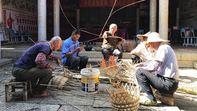 竹编技艺工序繁多复杂。黄勇专 摄 东南网7月4日讯 庄严古朴的家庙内,几位古稀老人蹲坐在矮凳上,长短不一的竹篾在老人们手里来回穿梭,阳光从天井斜射进来,一张张黝黑的脸上写满了坚毅、沧桑和满满幸福感,不一会儿,竹编产品雏形初现,或簸箕、或竹筐、或牛嘴笼、或小背篓…… 近日,在惠安仕尾村郑氏家风家训馆,暖阳映射下的竹篾在老人们手里自由游走,让到场的摄影师情不自禁按下快门,定格住一个个精彩瞬间,揭开当地传统竹编工艺的尘封记忆。 据介绍,村里的竹编技艺在明朝初期就已存在,清朝以后,竹编开始盛行,工艺也得到全面发展。在上世纪二三十年代,竹编技艺得到蓬勃发展,当时乡村周边资源丰富,竹鞭密布,需要时砍下竹鞭,切成条片,编织成各式农具或存储器物,使用频率和使用价值极高,是其时惠安老百姓家庭必备之物。 据了解,早期的竹编技艺都是通过师傅带徒弟的形式代代相传,延续至今的。不少村民依靠这门技艺,游街串巷,上门加工,赚取微薄收入,成为养家糊口的主要经济来源。那一时期仕尾村的竹编制品几乎遍布惠安县各个角落。 当地竹编制品老艺人表示,随着人们的生活水平日益提高,塑料制品慢慢替代竹编制品,使仕尾村的竹编技艺面临失传,急需加以抢救性保护。
