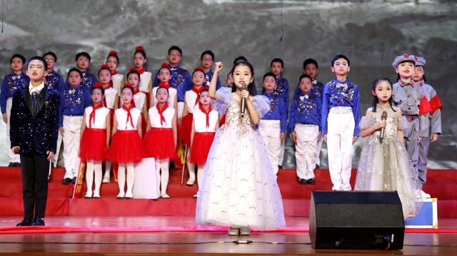第二实验小学教育集团和星校区诵读《有一首歌》。东南网记者 陈培源 摄 东南网11月21日讯(本网记者 陈培源 通讯员 陈燕燕)近日,2022年泉州市中小学“学习宣传党的二十大精神”红色经典诵读活动(泉港专场)在福师大泉港实验中学报告厅举行。 活动现场,泉港区辖区内13所学校带来精彩演出,朗诵者们饱含深情、富有感染力的朗诵,赢得了现场观众阵阵热烈的掌声。《携手共进 谱写华章》《红船,从南湖起航》《百年风华,盛世如愿》《美丽中国》等经典诵读表演,高潮迭起,无不呈现着阅读带来的力量,更展现了“新时代好少年”新风貌、新姿态。 据了解,此次红色经典诵读活动围绕歌颂党、歌颂祖国、歌颂中国特色社会主义,精选了一批当代红色名篇佳作、经典爱国诗文等作为诵读篇目,通过组织校园晨读、朗诵会、读书会、集中展演等,引导未成年人听党话、感党恩、跟党走。 9月份以来,泉州市委文明办联合市教育局组织全市各中小学、幼儿园开展红色经典诵读竞赛、展演交流等系列活动,引导广大未成年学生践行社会主义核心价值观,传承红色基因,提升道德情操,增进家国情怀。 本次活动由泉州市委文明办、泉州市教育局,泉港区文明委、泉港区新时代文明实践中心主办,泉港区委文明办、泉港区教育局、泉港区复兴少年宫承办,福师大泉港实验中学协办。