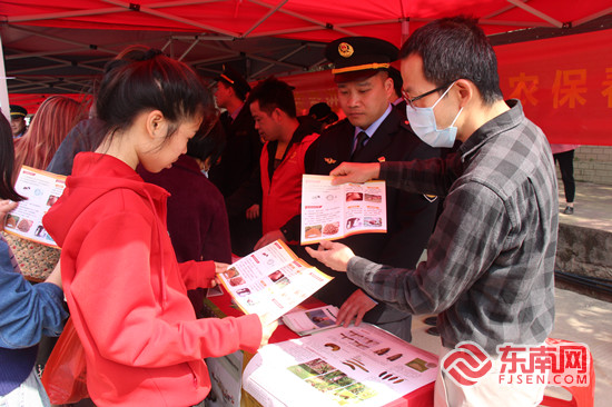 启动仪式现场。东南网记者 黄雨昕 摄 东南网3月15日讯(本网记者 黄雨昕)春耕时节,泉州市各地田间地头到处是耕种繁忙的景象,农业生产用种用肥正处于高峰期。扣紧当前春耕农事,3月15日上午,由泉州市农业农村局主办,南安市农业农村局、南安市东田镇政府协办,泉州高新职业培训学校承办的2023年泉州市放心农资下乡进村暨农业综合执法大练兵系列活动启动仪式在南安市东田镇举行,市县两级农业农村部门、农业执法机构及当地农资企业、农技人员、农民群众参与活动。 活动现场设置有政策法规和农业科技咨询、优质农资及农业机械展销、假劣农资曝光台等十多个摊位,悬挂了多条“放心农资”普法宣传标语。农业执法人员、农技专家和农资生产经营企业面对面接受群众咨询、分发“明白纸”“科普图书”等宣传资料,宣传普及农业法律法规、农资识假辨假及科学选购常识,引导农民群众理性购买、科学使用农资产品;农资企业现场展销农药、肥料、农业机械等多个品类的放心农资产品,方便农民群众选购使用。同时,活动现场设立了问题农资投诉举报点,鼓励农民群众踊跃投诉举报农资产品质量问题,参与对农资打假工作提意见建议。