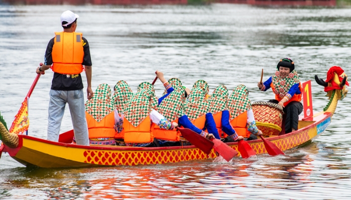 泉州南少林寺武僧龙舟队。邓文祥 摄 此次龙舟赛特别邀请了泉州南少林寺武僧、惠安女、惠安辋婆女、丰泽蟳蜅女、侨界青年女企业家、医护人员组成的天使之翼等特色龙舟队参赛,让世界各地侨青在体验体育竞技魅力的同时,近距离感受泉州的悠久历史和深厚文化底蕴。 赛龙舟是中国端午节的习俗之一,也是端午节最重要的节日民俗活动之一,2011年被列入第三批国家级非物质文化遗产名录。