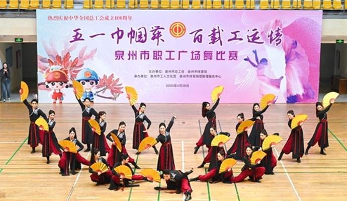 比赛现场。朱梦莹 摄 东南网4月30日讯(本网记者 施远圻 通讯员 朱梦莹)娘惹装与运动服共舞,红绸扇与黄簸箕争“艳”;当非遗古韵撞上复古潮流,当柔情似水比肩活力四射……在全国工会共庆中华全国总工会百年华诞、喜迎“五·一”国际劳动节的重要时刻,泉州市迎来了一场“多元融合”的职工文化盛宴——“五一巾帼舞·百载工运情”职工广场舞比赛。 随着铿锵的鼓点声响起,来自泉州市直和各县(市、区)的26支参赛队伍、500多名职工以风格迥异的舞步,将“工会一家亲”的凝聚力化作跃动的符号,让百年工运精神在整齐划一的踏步声、此起彼伏的喝彩声中,铺展成新时代劳动者团结奋进的壮阔长卷。 这边,头戴黄花、身着绿袍的瓷都劳动者踏着铿锵节奏,衣袂翻飞间尽显瓷都古韵;那边,身着红黑活力装束的青年职工以激情定格时间,动感节拍点燃全场;忽而旋律一转,南北方秧歌流转间相得益彰,生动诠释了劳动者对祖国的深情礼赞;紧接着,十数把红绸扇“唰”地展开,如烈火翻涌,随鼓点甩出雷霆之势……比赛中,各参赛队伍纷纷亮出绝活,将健身操、健身秧歌、扇子舞、街舞、复古舞蹈等多种元素巧妙融合,编排出一套套独具特色的广场舞。他们或轻盈飘逸,或刚劲有力,或热情奔放,或温婉柔美,以舞姿献礼百年工运,用汗水诠释奋斗精神,为观众呈现了一场融汇工运力量与海丝风韵的文化盛宴。