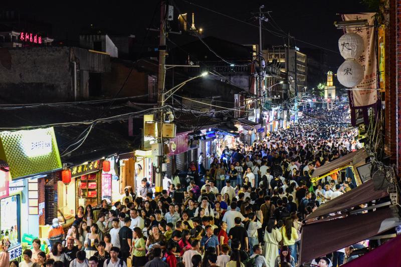 5月1日晚,夜幕降临,泉州西街熙熙攘攘的人群。东南网记者 林婕 摄