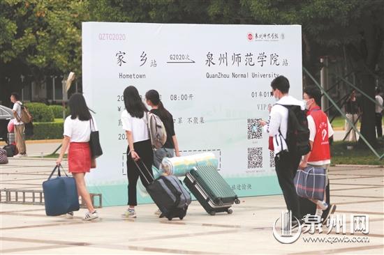 志愿者为新生提供一对一服务 泉州师范学院:结合专业特色开展迎新活动 9月19日、20日两天,泉州师范学院泉州主校区(校本部)和南安校区、鲤城校区三个校区迎来了来自全国各地的5000多名2020级本科生和研究生。昨日,在泉州师范学院主校区(校本部)大门口,新生们在工作人员和志愿者的引导下佩戴好口罩,有序进行行李消毒、体温检测、“八闽健康码”查验、入校资格核查等。进入校园后,志愿者们上前帮助学弟学妹搬运手中的行李,引导他们乘坐学校的摆渡车前往各学院报到,办理相关入学手续,进入宿舍办理入住等。泉州师范学院为新生们提供了各项温馨服务,包括24小时接站、学生志愿者“一对一服务”等,让新生们充分感受到来自学校的周到的安排。 此外,该校各二级学院还结合专业特色和闽南地方特色开展了各具特色的迎新活动。在音乐与舞蹈学院,南音系的同学们表演南音经典节目和新生现场热烈互动,并设置“翅膀墙”,将新生入学第一张拍立得照片贴在了“翅膀墙”上;海洋与食品学院的学哥学姐们送给每位新生一本包装精致的书,并在书本写上联系方式和寄语;文传学院以“一棵树干”为背景板,由新生选择各自专业代表颜色,用手蘸上印泥印到背景板上作为树叶的部分,寓意该学院五个专业同根同源,紧紧相抱。 |