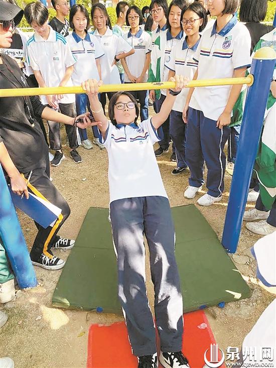 女生在做斜身引体练习(李振昌 供图) 引体向上、实心球:上肢力量要求高 多进行力量练习 泉州五中初三体育课备课组长王俊滨说,文化考试和体育考试是相互促进的,良好的精神面貌更能提高学生的学习效率。 针对此次公布的结果,王俊滨称,抽选考项目中的引体向上、实心球对学生上肢力量要求高,尤其是引体向上,对男生上肢的核心力量要求较高,所以此项目对部分男生来说是短板。实心球方面,对部分女生来说也是比较有难度的,女生的力量天生就会比男生弱些,该项目要求上下肢协调配合发力的,所以不仅要求技术技巧,也要有力量。接下来他们将对学生的长跑、短跑,以及力量性相关素质练习训练,加强学生对短板项目的练习。 “只有学校、家长、教师、学生共同配合,才是提高学生成绩最有效的办法。而体育锻炼贵在坚持。”王俊滨说,接下去体育课会多对学生进行技术性指导,加强力量性的相关性练习,让学生活学巧练。同时也建议学生们每天回家后能做几组力量性练习进行强化,充分利用周末空档时间到公园或开阔的地方锻炼。 |