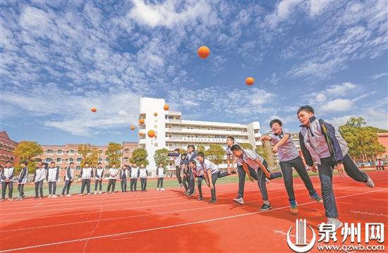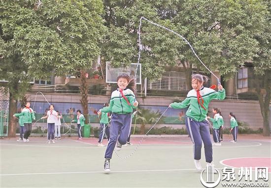 泉州昇文小学的学生在踢足球 增强趣味: 发展特色体育项目 对于孩子来说,兴趣是最好的老师。11月17日下午4时30分,在泉州市昇文小学操场上,记者看到,五年级的学生正两两一组,双脚轮换跳、交叉跳、开合跳……他们的动作行如流水,令人目不暇接,欢笑声、甩绳声汇集成一片欢乐的海洋。 “花样跳绳是全校学生最喜欢的运动项目之一,趣味性强,可以单人、双人,甚至三人一起跳,多人合作可以锻炼孩子们的协调性。”该校体育老师万碧莲认为,体育对于孩子的综合发展具有很大的促进作用,而体育教学中兴趣又占据非常重要的位置,通过发展花样跳、足球等特色体育项目,可以增强体育的趣味性,让孩子在运动中获得快乐,从而真心喜欢上体育。 改变观念: 锻炼有利身心增加乐趣 “学生和家长应转变观念,控制饮食,平时多留时间给体育运动。”黄胜利说,不要把运动当成负担,其实,在体育运动中可以享受到无穷乐趣,比如投篮后体会到的成就感,竞争中体会到的紧张和胜利后的自豪感,还有团体配合中的团队协作精神等。长跑相对枯燥,但可以锻炼人的意志品质和毅力。 “体育锻炼不仅能强身健体,还有利于学生的心理健康。”泉州外国语学校洛江校区德育处处长杨俊健认为,学生坚持参加学校规定的每日跑操活动,培养了学生的良好习惯和纪律意识,更有助于学生在跑步过程中释放压力,提升抗压水平,形成健全的人格。