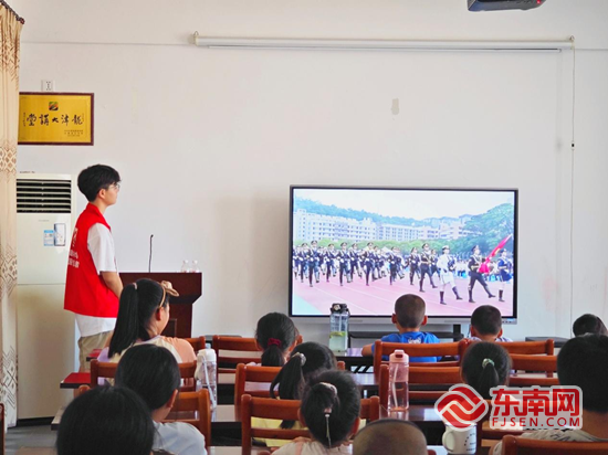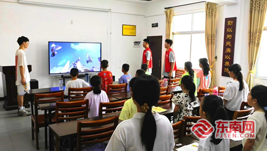 志愿队队员与孩子们观看天安门国旗护卫队升旗视频。杨明钧 摄 东南网8月11日讯(通讯员 杨明钧)为助力《新时代爱国主义教育实施纲要》的实施,积极推动文化科技卫生“三下乡”,近日,福建农林大学校国旗护卫队赴长泰区枋洋镇志愿队在枋洋镇青阳村卢经廉政文化教育基地开展了以“借国旗的一抹鲜红,铸孩童心中的信仰”为主题的爱国主义教育活动。 当天,志愿队队员借《中华人民共和国国旗法》、天安门国旗护卫队以及福建农林大学校国旗护卫队的升旗视频,进行以护旗爱旗为主题的爱国主义教育。 队员们表示,国旗象征着一个国家的精神与民族气概,在孩子的早期教育中穿插红色故事与家国大事,有助于帮助他们树立自己的志向,鼓励他们在人生的沃野中持续奔跑,引导他们把爱国情、强国志、报国行融入到日常学习生活中去。