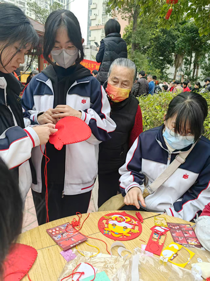 制作灯笼卡片 东南网1月24日讯(通讯员 黄成志 郭子衔 谢雨馨 )近日,泉州一中东海校区初二(九)班的同学们在班主任黄老师带领下,走进东海街道北星社区海星小区,开展了一场别开生面的春联义写、节日氛围布置和卫生大扫除志愿活动,为即将到来的蛇年春节增添了节日氛围,为文明泉州建设增加了一道靓丽的风景线。 活动当天,小志愿者们早早来到社区活动中心。书法特长的同学挥毫泼墨,一副副饱含祝福的春联便呈现在居民面前。“梅引东风开福运,蛇衔玉笔续龙章”、“一帆风顺吉星到,万事如意福临门”,笔锋或刚劲有力,或飘逸灵动,吸引众多居民驻足欣赏、有序领取,现场洋溢着欢快、祥和、喜庆的氛围。