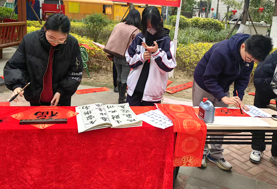 现场写春联 与此同时,其他志愿者分组深入小区进行大扫除、制作灯笼福袋、布置节日氛围等。他们手持扫帚、抹布等工具,认真清扫道路上的落叶、杂物,擦拭公共设施。尽管天气很冷,但同学们热情高涨,用实际行动为社区环境美化贡献力量。 |