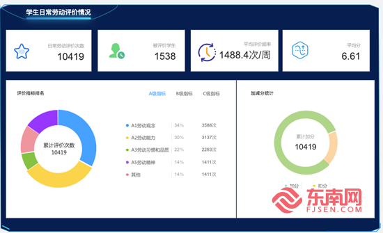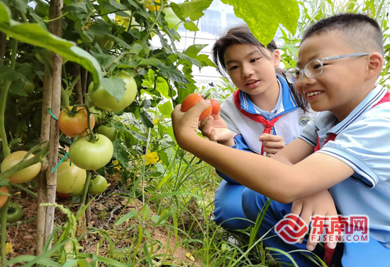 学生观察番茄的生长情况。学校供图 据悉,基地核心是现代技术赋能下的蔬菜大棚和中草药种植生态劳动教育系统。智能水肥一体化喷灌系统如大地脉络,依托基于物联网技术控制,精准为作物定制“营养套餐”,实现节水节肥双效益;棚内外分布式安装的太阳能捕虫设备昼夜值守,以物理方式构建无公害防线;人脸识别闸机不仅保障安全,更无缝衔接智慧劳动评价系统——学生从踏入劳动实践基地那一刻起,翻土、育苗、浇水、采收等劳动实践轨迹皆被忠实记录,系统自动生成个性化劳动素养报告,让成长可视化。 学校围绕“日常生活劳动、生产劳动、服务性劳动”三大类劳动内容,面向“学校端、家长端、教师端”开发具有本域性、覆盖性特色的多元、多维、多向的学校劳动教育评价系统软件,全周期、多维度、数字化推进劳动教育的深入开展。“智慧评价系统彻底改变了劳动教育模式。”德化县第五实验小学教师黄艳华表示,“系统基于过程数据为学生画像,教师可针对性进行指导,真正实现教学的因材施教、因人施策。”