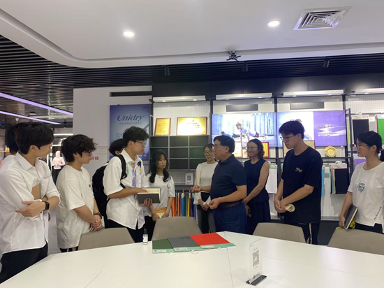 实践队员与校友企业技术人员进行交流。实践队 供图 产研对接:架起校企合作桥梁 “高校实践与产业需求对接,能加速绿色技术的落地应用。”在中国纺织工程学会石狮产业研究院,研究院的前沿技术分享让队员们大开眼界。实践队还走访了校友企业泉州市伊洛科新材料有限公司,针对企业面临的技术瓶颈,师生团队提出了多项优化建议,获得企业高度认可。校友黄志昌表示:“母校师生的专业视角为我们提供了新的思路,这些建议具有很强的可操作性。” |
