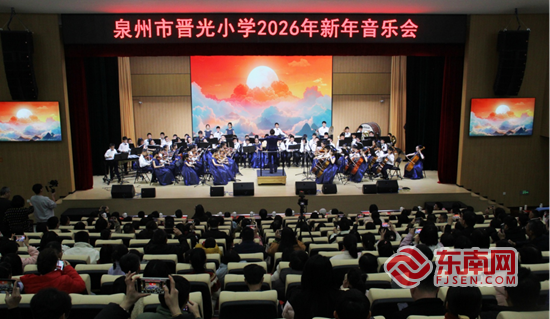 东南网2月4日讯(通讯员 邱斯吟)近日,泉州市晋光小学2026年新年音乐会温情上演。师生、家长齐聚一堂,共同欣赏了一场高水准、多形式、富有文化内涵的艺术盛宴。整场演出旋律悠扬、歌声动人,既展现了学校艺术教育的丰硕成果,也为新春佳节奏响了温暖而美好的序曲。 本场音乐会是晋光小学坚持“五育融合”育人理念、深化美育实践的重要体现,也是学校延续多年的新年传统品牌活动。演出分为上下两个篇章,节目内容丰富、形式多样,涵盖管弦乐合奏、合唱、南音、高甲戏、亲子器乐表演等多种艺术形式,全面展示了晋光学子良好的艺术素养和积极向上的精神风貌。