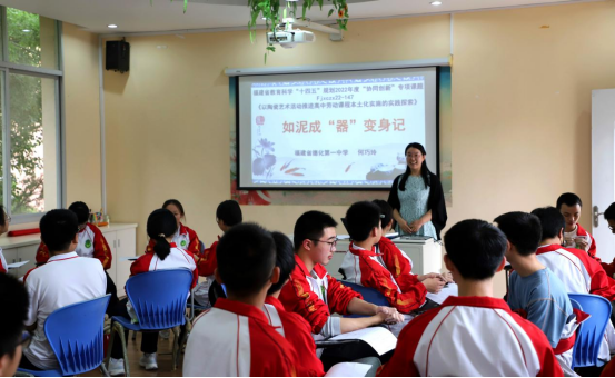 体系:构建“三维三阶”课程,让学科知识活态融合 “探秘‘中国白’釉料的化学分子式”“解析陶瓷器皿的数学空间美学”“拆解陶瓷烧制的物理热平衡原理”……在德化一中,陶瓷不再是单一美术课、劳技课的内容,而是贯穿所有基础学科的融合媒介,学校独创的“三维三阶”全链条课程体系,让枯燥的书本知识与陶瓷文化深度绑定,焕发出全新的生命力。 “三维”课程领域划分清晰,覆盖学生核心素养培育全维度:人文素养领域,学生品读陶瓷主题诗词,梳理德化瓷沿海上丝绸之路的外销历史,感悟非遗文化的传承脉络;科学探究领域,学生钻研陶瓷釉料配比的化学原理、窑温控制的物理规律,用数学知识为陶瓷造型精准建模;社会参与领域,学生走进陶瓷企业实地调研,拜师非遗传承人学习制瓷技艺,自主开展陶瓷文创设计,实现知行合一。 “三阶”实施路径循序渐进,贴合学生认知成长规律:从基础的学科融合探索,到针对性的选修拓展深化,再到高阶的研究性学习攻关,层层递进、逐步提升。这一课程体系落地后,彻底改变了传统课堂的教学模式,也让学生收获了实打实的成长。 语文学科课堂上,学生们跳出写作技巧的桎梏,扛起文化传承的责任。学生王铮堉坦言:“我不仅学会用文字描绘德化瓷的美,更读懂了千年文脉背后的匠心,明白了青年传承本土文化的使命。”学生施君凌也感慨,课堂让她重新认识了德化瓷,立志以笔为媒,让非遗陶瓷文化被更多人知晓。 数学、物理、化学、英语等学科,也因陶瓷融合变得生动有趣。数学课上,学生通过设计陶瓷茶杯,巩固几何知识,感悟空间美学;物理课上,大家探究烧制过程中的热应力原理,读懂冰裂纹瓷的科学与艺术辩证关系;化学课上,学生动手实验除杂流程,从微观视角解锁“中国白”的烧制密码;英语课上,学生用地道英文推介德化瓷,让语言学习成为文化传播的桥梁。不同学科的知识,在陶瓷实践中相互贯通,真正实现了“做中学、学中悟”。